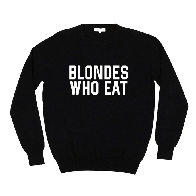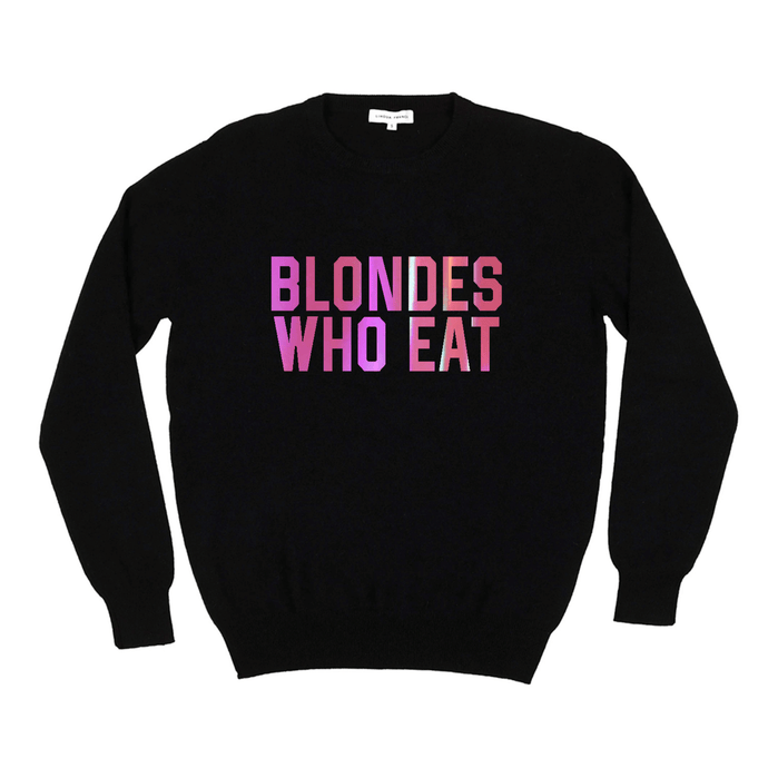 BLONDES WHO EAT BLACK W/ MULTI COLORED HOLOGRAPHIC FONT of ATHLETIC // UNISEX ADULT CREWNECK